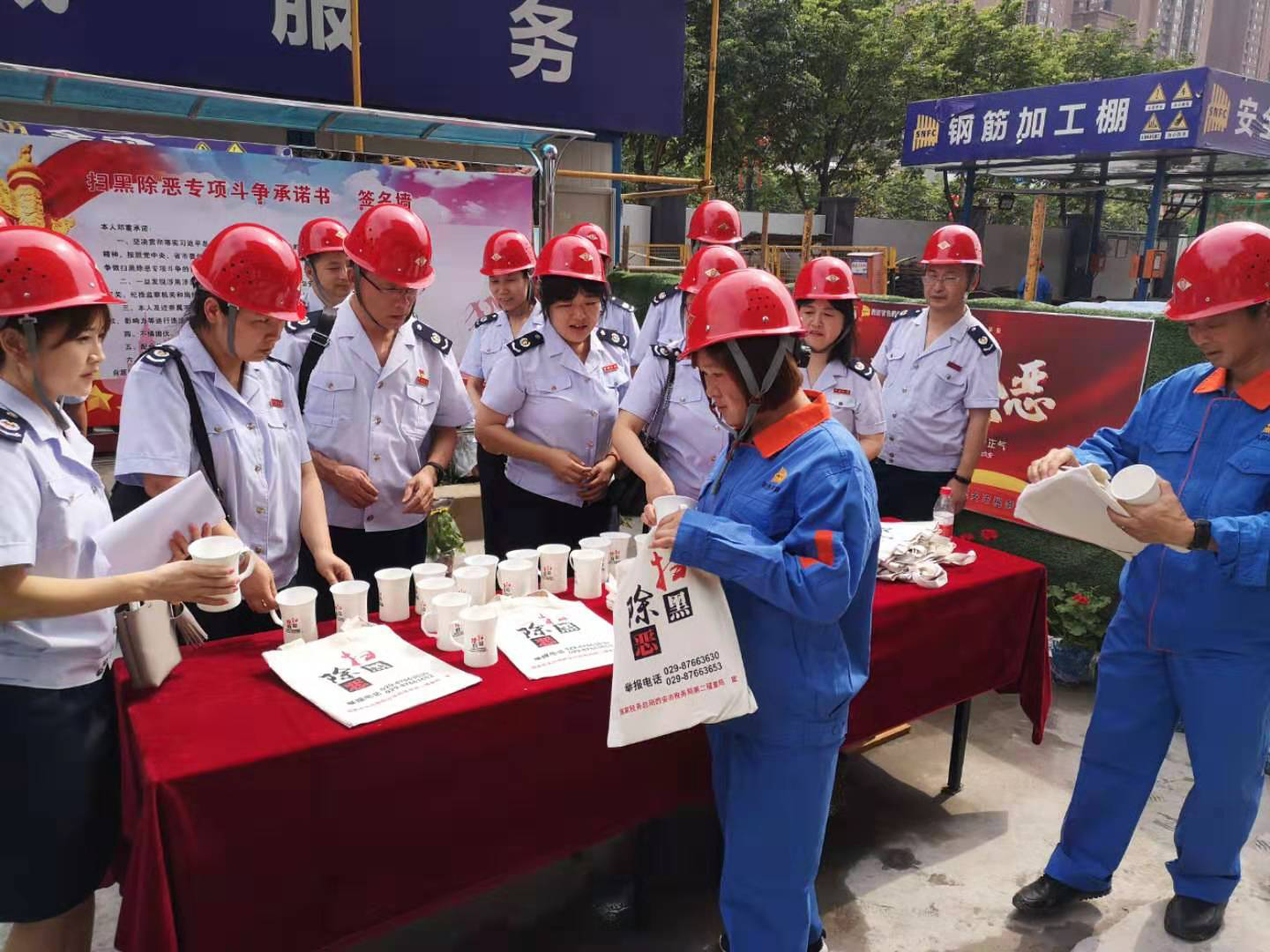 近日,西安市稅務局第二稽查局和我公司在西安鵬潤悅秀城二期2.1標段項目部聯合舉行以“稅企聯動、掃黑除惡”為主題的宣傳活動,西安市稅務局第二稽查局副局長宋曉軍、公司總經理楊明鈺、總會計師陳毓等兩家單位有關領導及項目施工管理人員參加了本次活動。