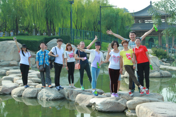 活動開始前,大家就已換上運動衣和運動鞋,精神抖擻,整裝待發(fā)。下午三點半活動正式開始。路線規(guī)劃是從曲江遺址公園西門出發(fā),繞著曲江南湖行走一圈,再回到起點。曲江南湖是古都長安有名的風景區(qū),曲江南湖周圍綠樹環(huán)繞,空氣清新,各種吸引眼球的雕塑和亭榭散布于曲江遺址公園內(nèi),選擇此地進行健步走,員工們可以邊行走邊觀賞美景,既鍛煉了身體,又放松了心情。