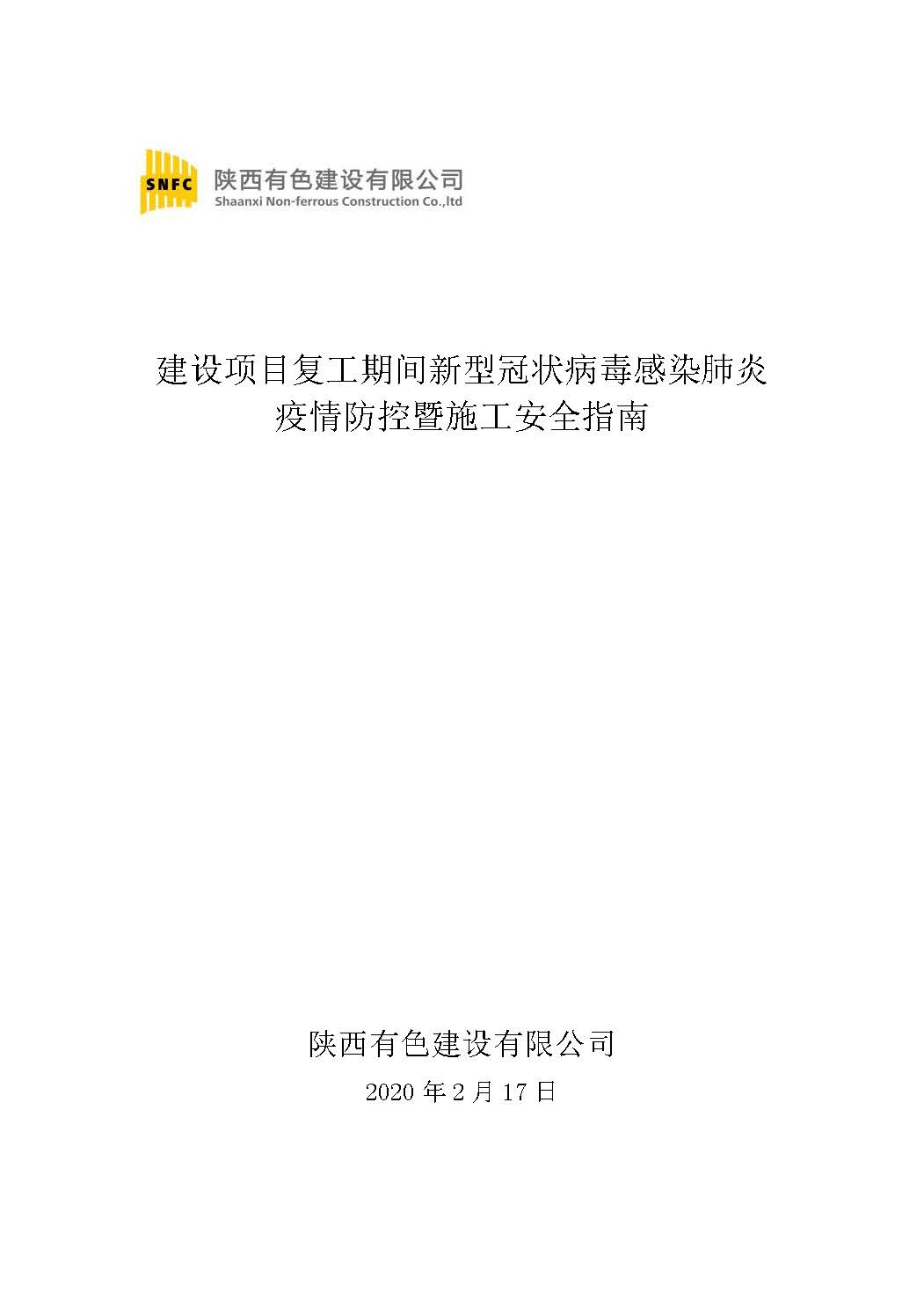 【疫情防控】 建設項目復工期間新型冠狀病毒感染肺炎疫情防控暨施工安全指南