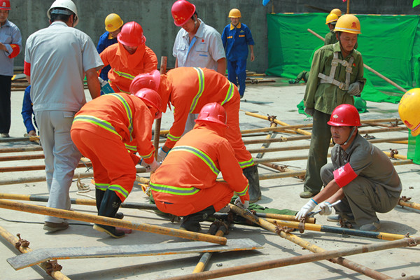 此次演練的科目是外腳手架倒塌事故應急救援,該演練方式技術(shù)難度大,現(xiàn)場條件要求高,為確保演練圓滿完成,公司精心組織策劃,協(xié)調(diào)各參演單位,編制演練方案,合理設置程序,確保演練能夠達到預期目標。下午兩時許,隨著應急救援演練總指揮的一聲令下,演練正式開始。此次演練假設大興•公園府邸項目施工現(xiàn)場突然發(fā)生一起外腳手架坍塌事故,導致在腳手架作業(yè)面施工的兩名工人隨同腳手架墜落地面并被掩埋其中。現(xiàn)場安全員發(fā)現(xiàn)情況后立刻向項目負責人進行了報告,該負責人立即啟動《應急救援預案》,一邊組織人員迅速開展自救,一邊向公司報告,并第一時間請求120、119等政府救援力量馳援。接到險情后,公司主管生產(chǎn)副總史濤帶領(lǐng)公司應急救援小組相關(guān)人員第一時間前往現(xiàn)場,并由生產(chǎn)運行部經(jīng)理張輝擔任現(xiàn)場總指揮。應急小組在了解完現(xiàn)場情況后,立即將救援小組按照其功能劃分成若干個,迅速展開救援。疏導組疏導事故區(qū)域交通,準備迎接相關(guān)救援部門車輛進入事故區(qū)域;搶險組立即對坍塌的腳手架進行切割、清理;救援組迅速從廢墟中把兩名傷員移出;醫(yī)護組就地實施搶救;警戒組第一時間在現(xiàn)場設置了警戒線,維持現(xiàn)場秩序;調(diào)查組及時查明事故發(fā)生的原因,并對沒有坍塌的腳手架提出整改方案。隨著120急救車在急促的警報聲中載著最后一名傷員駛離現(xiàn)場,此次演練圓滿完成。