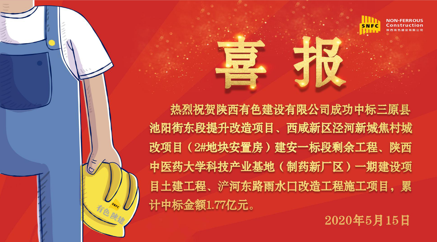 三原縣池陽(yáng)街東段提升改造項(xiàng)目、西咸新區(qū)涇河新城焦村城改項(xiàng)目(2#地塊安置房)建安一標(biāo)段剩余工程、陜西中醫(yī)藥大學(xué)科技產(chǎn)業(yè)基地(制藥新廠區(qū))一期建設(shè)項(xiàng)目土建工程、浐河?xùn)|路雨水口改造工程施工項(xiàng)目接連中標(biāo),累計(jì)中標(biāo)金額1.77億元。