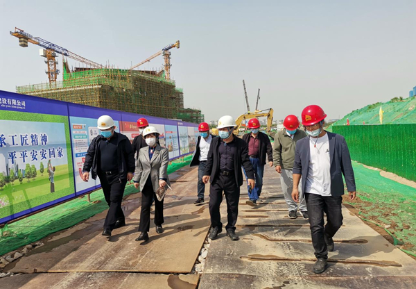 抵達項目部后,許蓁蓁一行主動掃碼、測溫、登記后,深入現場就項目安全生產、施工進度、質量控制和疫情防控等工作進行檢查。在聽取項目經理黃玉全和副經理袁康的現場匯報后,許蓁蓁對項目現階段所取得的成績給予了充分肯定。她表示,絲路風情城二期項目作為有色陜建截至目前承接到的最大項目,對有色西勘院也具有重要意義。項目管理團隊要高度重視安全生產,創新工作機制,優化管控體系,筑牢安全紅線和質量底線;要持續抓好疫情防控常態化工作,堅持生產和防疫同步謀劃、同步部署、同步推進,筑牢戰“疫”防線。